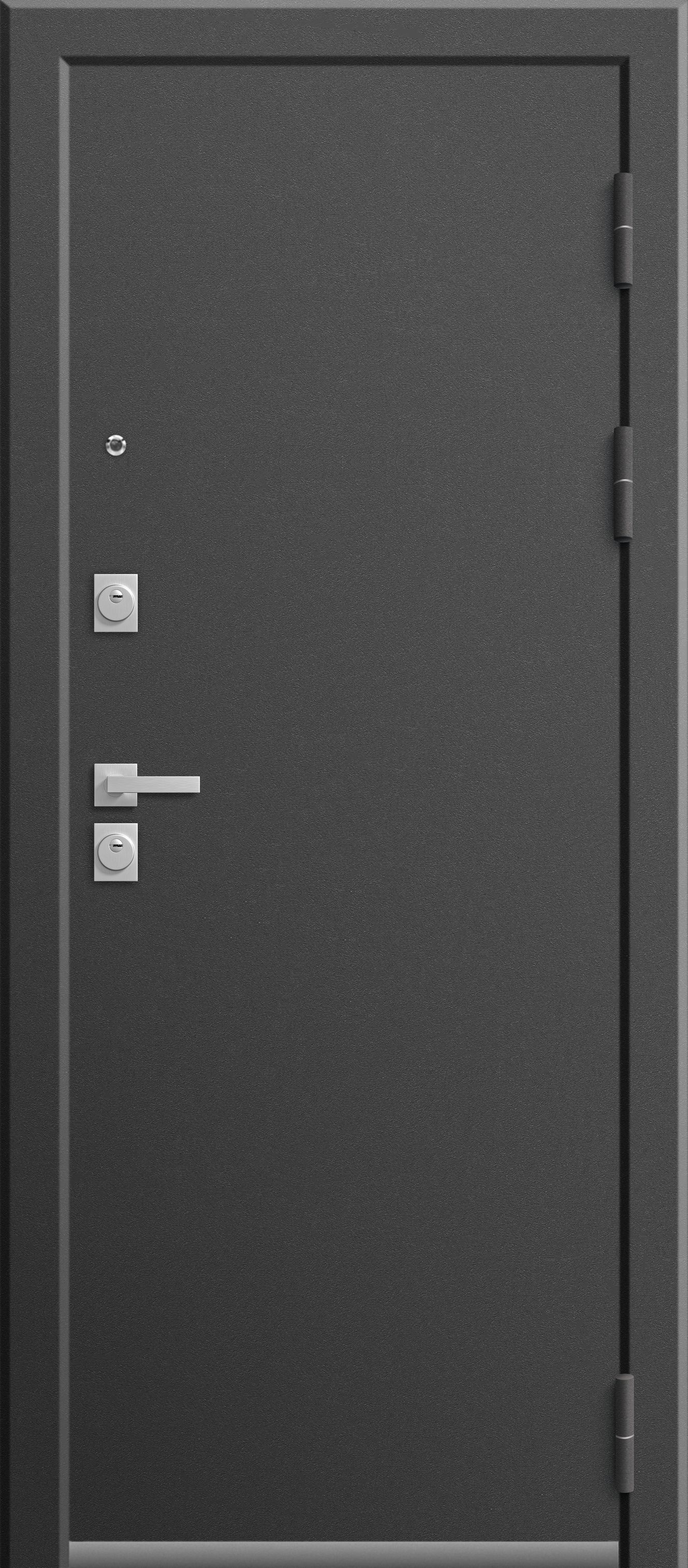 Дверь изготовлена из высокопрочной листовой стали с увеличенной толщиной и двухслойным антикоррозийным покрытием. Конструкция короба - цельногнутая. Это делает ее не только одной из самых крепких и безопасных, но еще и долговечной. Вместо двух петель мы используем три, что в сочетании с тремя противосъемными штырями делают взлом через петли практически невозможным.